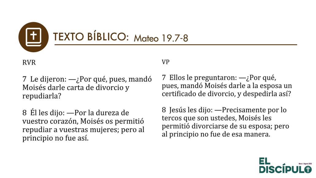Deuteronomio 6.3-9; Mateo 19.3-9